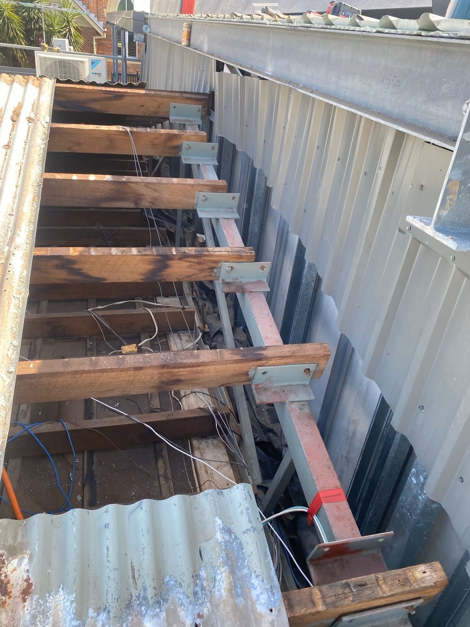 The old roof presented a number of significant challenges. Corrosion had impacted the roof sheets, joins, flashings, screws, and dektites, leading to compromised weather protection. Most of the silicone sealant had deteriorated, making the structure more vulnerable to leaks. The school’s foam gutter guards were trapping more moisture than they prevented, which promoted rust and added to maintenance headaches due to heavy tree debris in the area. In addition, several roof penetrations for air conditioning units and PVC pipes were not compliant with the current building standards, further risking water ingress and structural issues. It was clear the roof had reached the end of its service life and required urgent attention.